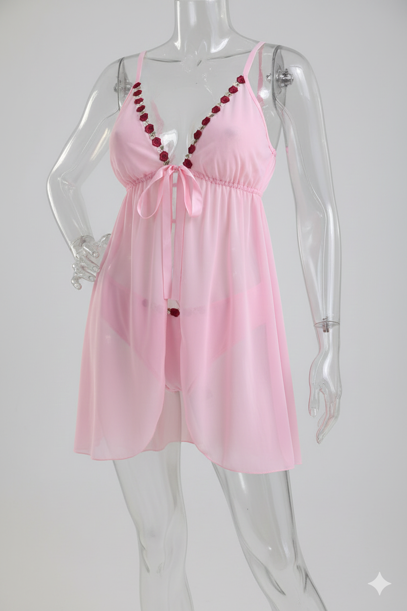 قميص لانجيري وردي خامة زبدةلانجيري قطعتين